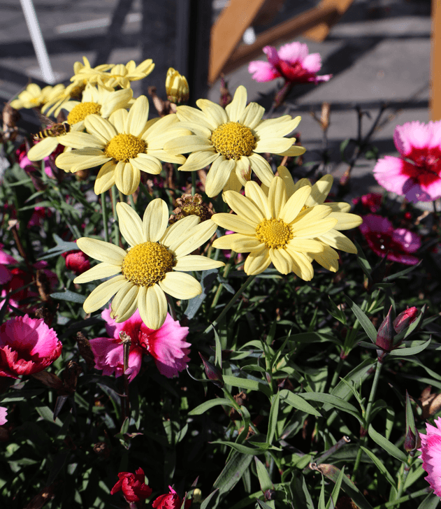 Garðyrkjudeildin fær blómin í hús í lok maí er fyrsta verkefni að útbúa blómakörfurnar sem hanga á staurum á Garðatorgi. Blómakörfurnar eru 66 talsins og í þær fara samtals 1.600 blóm.