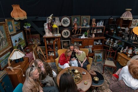 Margt fólk naut þess að sitja í huggulegum stofum sem Jazzþorpsteymið setti upp.