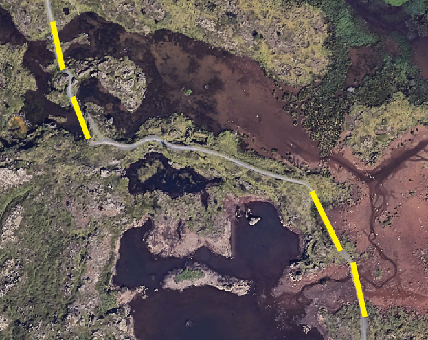 Á mynd fyrir neðan má sjá hvar votlendispallarnir munu liggja.
