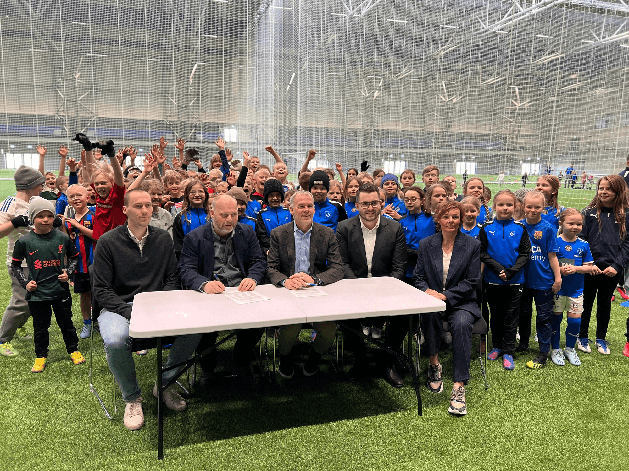 „Að geta undirritað svona mikilvægan samning í Miðgarði, fjölnota íþróttahúsinu okkar sem ég fullyrði að er á heimsmælikvarða, er alveg sérstaklega skemmtilegt,“ sagði Almar bæjarstjóri.