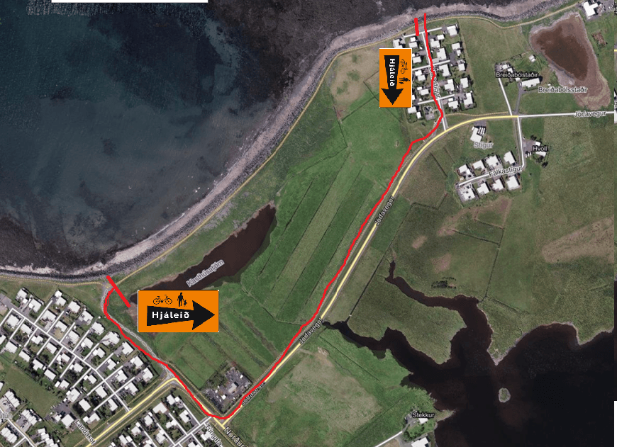 Stígnum meðfram sjóvörninni verður lokað meðan á framkvæmdum stendur. Áætlað er að þær standi yfir í um 6 til 8 vikur. Hjáleið má sjá á meðfylgjandi mynd.