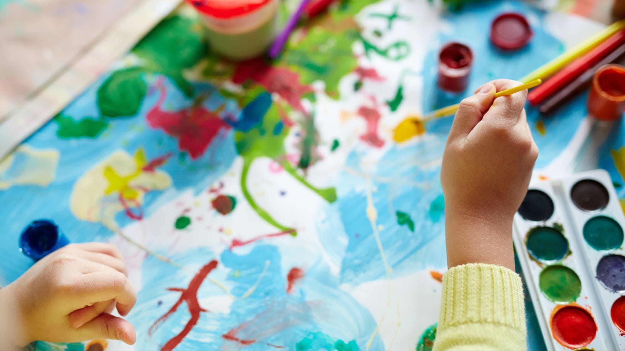 Á Ökrum var lögð sérstök áhersla á samvinnu og vináttu. „Við á Ökrum höfðum hópastarf þvert á deildir þar sem lögð var áhersla á vináttu og samvinnu. Þá héldum við upp á afmæli Blæs í samverustund inni á deildum,“ segir Guðrún Valgerður Ásgeirsdóttir, leikskólastjóri Akra. Svo var skemmtilegt samvinnuverkefni í boði í íþróttasal þar sem börnin fengu að lita og mála á stóra pappírsrenninga.