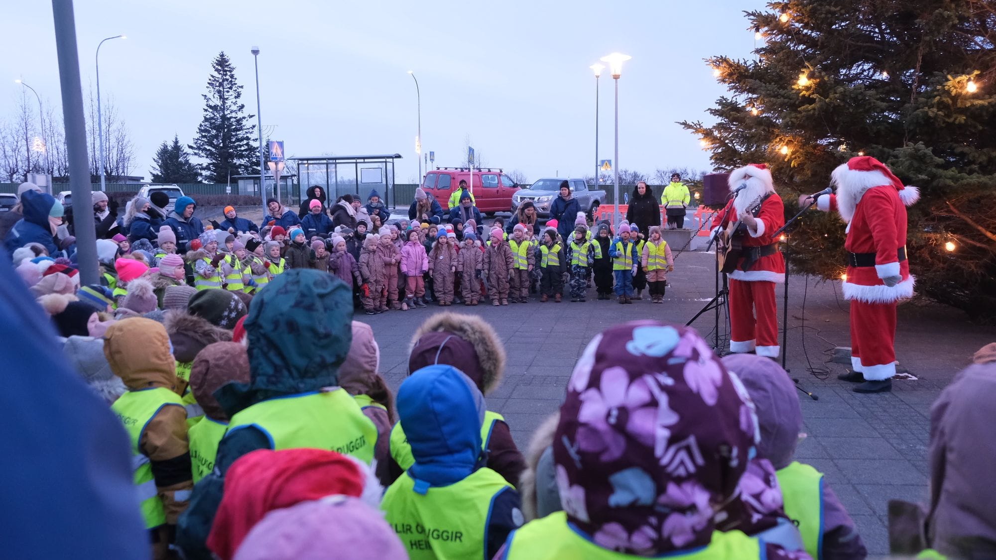 Hópur leikskólabarna kom saman til að tendra ljósin á jólatrénu - Garðabær