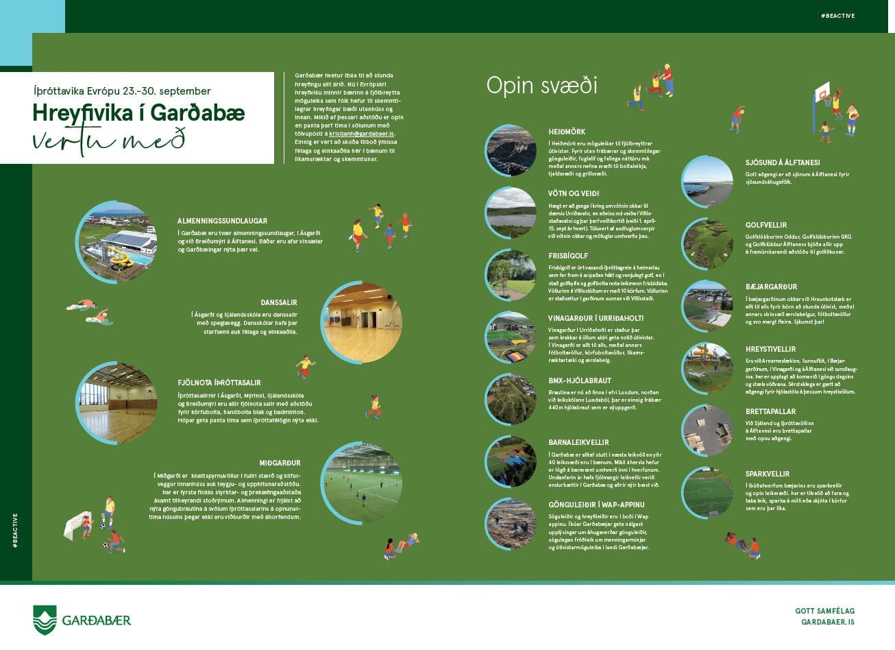 Hreyfivika í Garðabæ fer fram 23.-30. september í tilefni af Íþróttaviku Evrópu. #beactive - Vertu með!