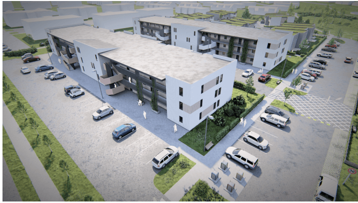 - Tillagan gerir ráð fyrir íbúðarbyggð á 2-3 hæðum, alls 75 íbúðir í fjölbýli og raðhúsum, aðkomuvegi frá Breiðumýri og opnu svæði til norðvesturs.