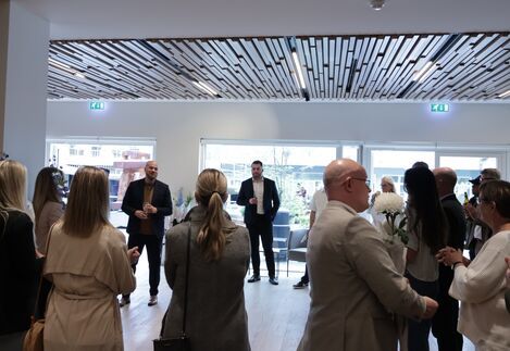 Leikmenn meistaraflokks Stjörnunnar, stjórn Stjörnunnar, stjórn körfuboltadeildarinnar og íþrótta- og tómstundarráð Garðabæjar ásamt bæjarfulltrúum komu saman til að fagna.