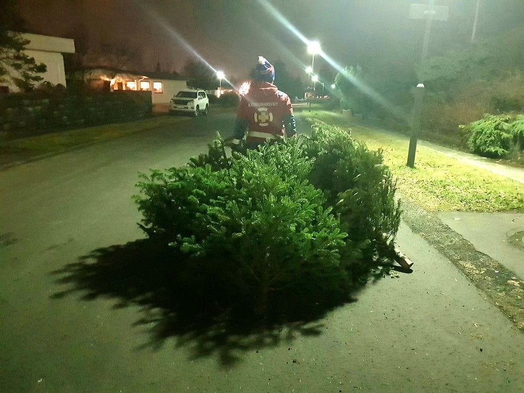 Félagar úr Hjálparsveit skáta í Garðabæ sjá um að hirða jólatrén eins og fyrri ár.