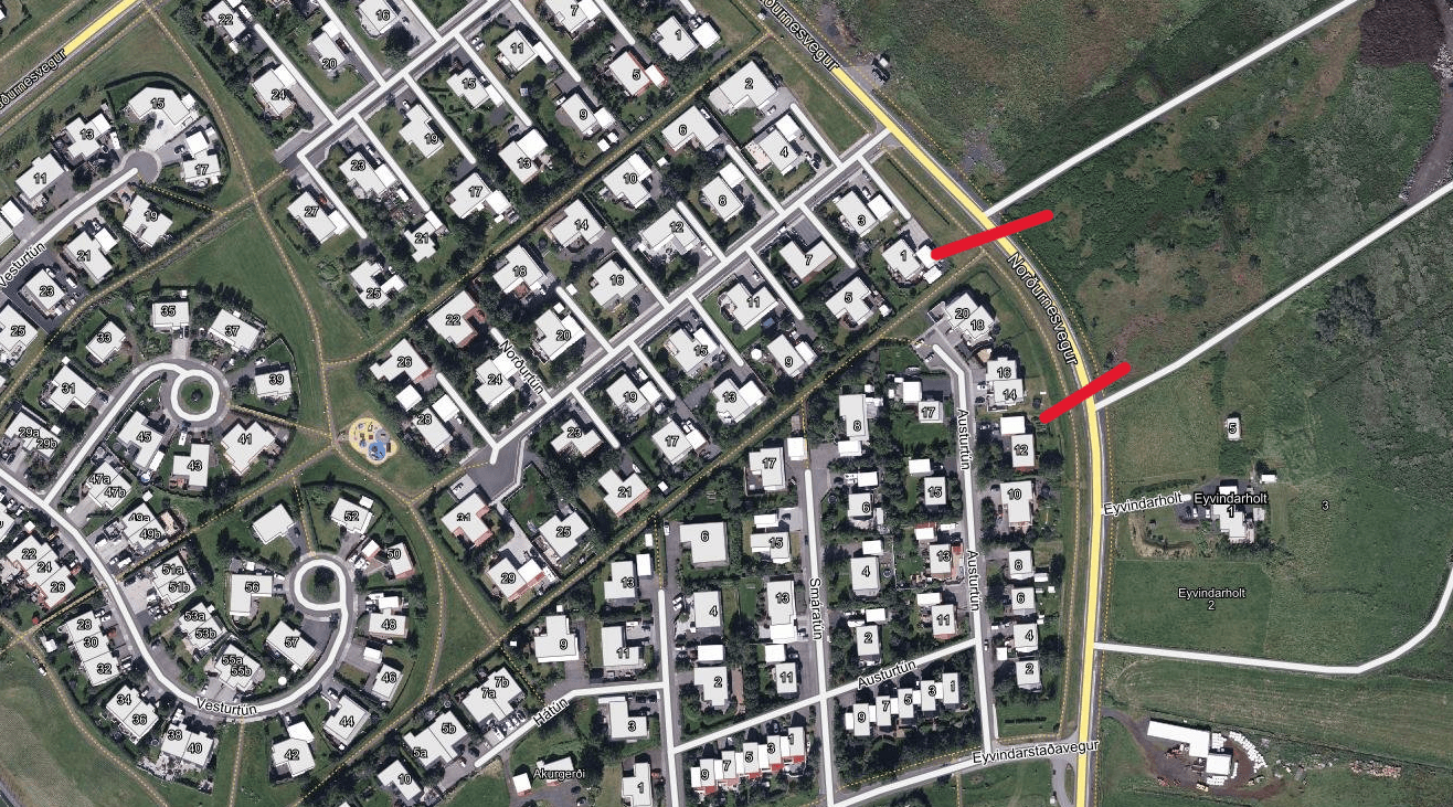 Unnið verður að upphækkun gatnamóta og einnig verður lögð vatnslögn undir veg og hún tengd við dreifilögn sem er í hljóðmön við Norðurnesveg.