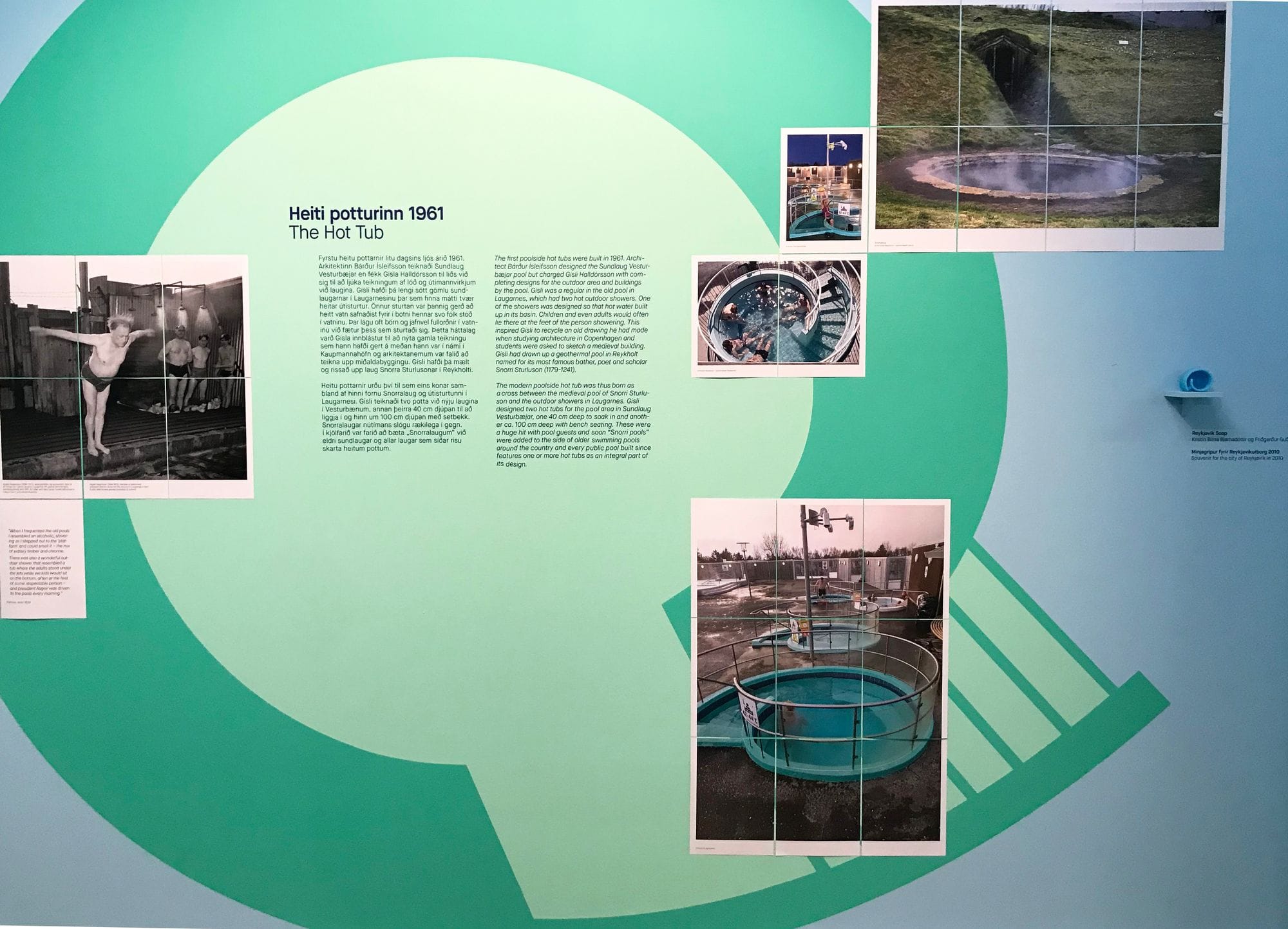 Sýningin Sund hefur nú þegar vakið mikla athygli og lof gesta sem og fjölmiðla. SUND nær yfir tímabilið frá sundvakningunni við upphaf 20. aldar til dagsins í dag. Sagan sem hún segir af sundlaugamenningu er um leið ylvolg sagan af íslensku nútímasamfélagi með léttri angan af klór og hveralykt, gufuslæðu og skvampi. Sýningin er styrkt af Safnasjóði og stendur fram á haust. Sýningin er afrakstur samvinnu milli Hönnunarsafns og þjóðfræðideildar Háskóla Íslands en sýningarstjórar eru Valdimar Tr. Hafstein þjóðfræðingur og Brynhildur Pálsdóttir hönnuður.