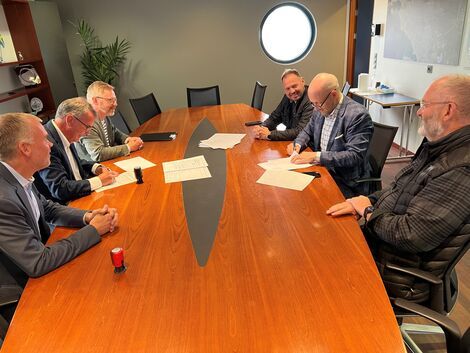 Á mynd fyrir neðan: Þorvaldur Gissurarson forstjóri ÞG verk og Almar Guðmundsson bæjarstjóri handsala samninginn.