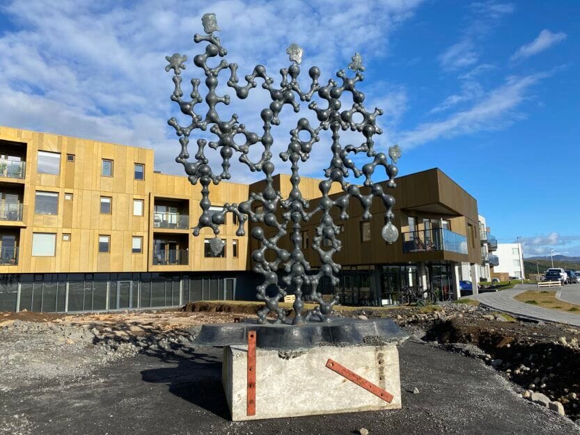 Listaverkið nýtur sín afar vel á nýjum stað í Urriðaholti og er einkar glæsilegt.