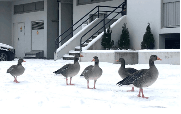 Í veðurfari síðustu vikna og mánaða og þá eiga fuglar erfiðara með að finna sér æti. Þetta á bæði við um stærri fugla eins og grágæsir og einnig um smáfuglana sem sækja garða heim.