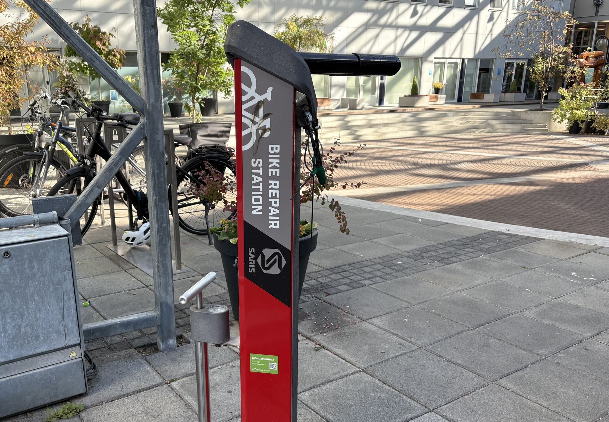 Viðgerðastandarnir hafa reynst hjólafólki vel en þar má t.d. pumpa í dekk, herða skrúfur og sinna öðru minniháttar viðhaldi á reiðhjólum.