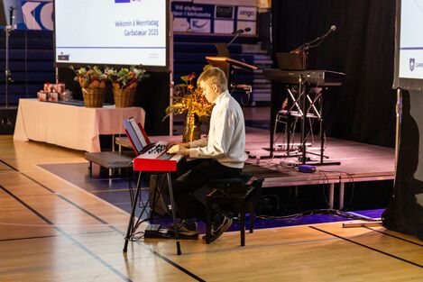 Dagskrá Menntadagsins 2025 var hin glæsilegasta. Magnús Stephensen lék ljúfa tóna á píanóið áður en Guðrún Árný tók við með skemmtilegum samsöng.