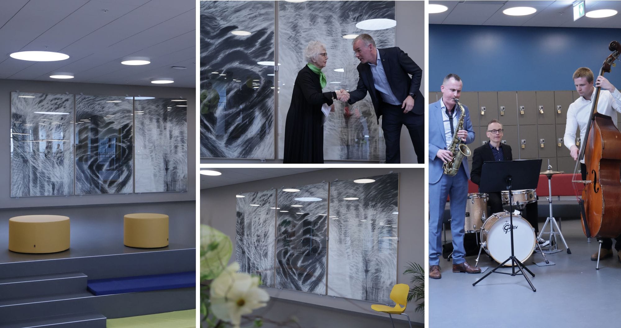 Ragnheiður hélt tölu við athöfnina og sagði meðal annars frá því að hún hefði þurft að halda aftur af tárunum þegar hún sá fyrst rýmið sem verkið myndi prýða og útsýnið frá aðalsal skólans. Hún sá að það myndi njóta sín vel á þessum stað.