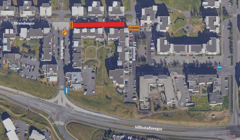 Götukaflinn verður lokaður fyrir alla umferð á meðan framkvæmdum stendur, eins og sýnt er á meðfylgjandi mynd.